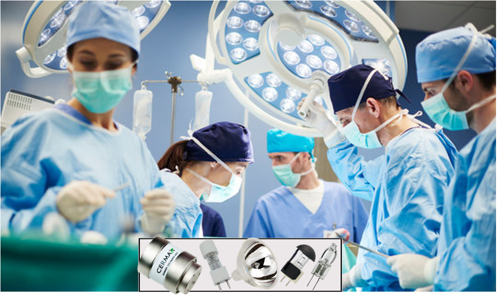 The 150P25/2SB clear, silvered bowl incandescent lamp is used as a surgical lamp in older style operating rooms.